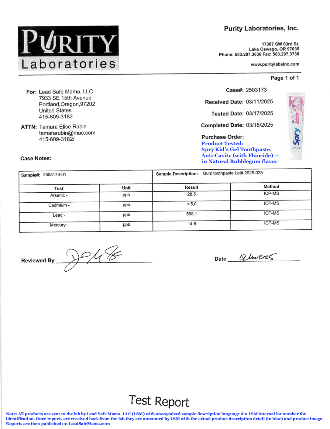 Lead Safe Mama, LLC - Spry Kid's Gel Toothpaste, Anti-Cavity (with Fluoride) - in Natural Bubblegum flavor, Gum toothpaste Lot# 2025-025