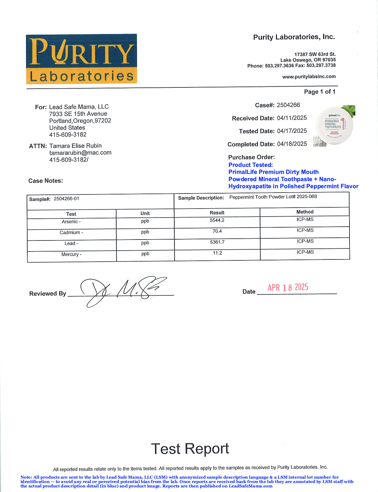 Lead Safe Mama, LLC - Peppermint Tooth Powder Lot# 2025-069