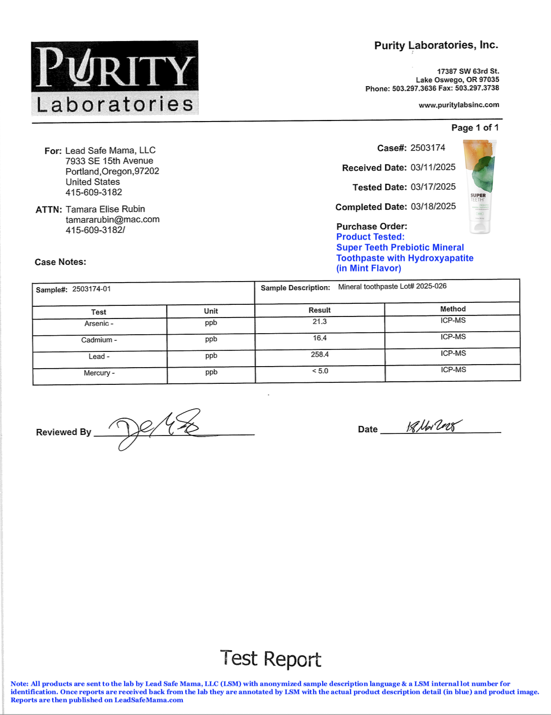 Lead Safe Mama, LLC - Mineral toothpaste Lot# 2025-026