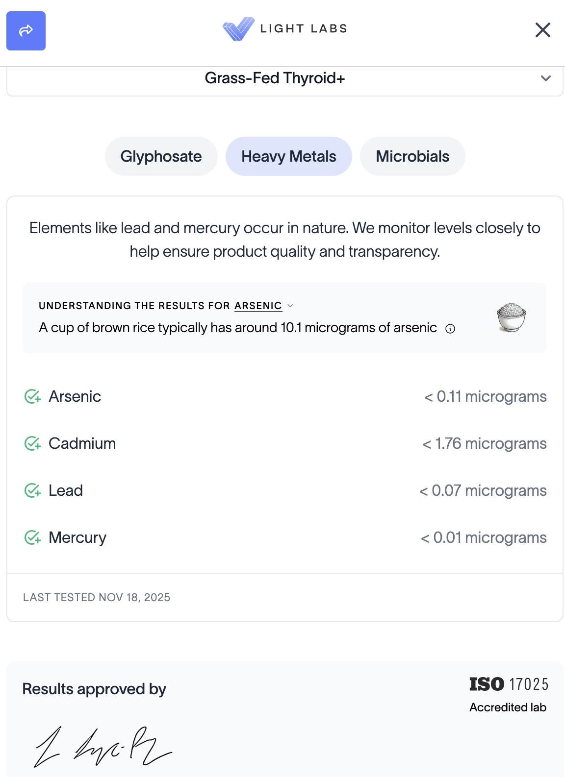 Heart & Soil Grass-Fed Thyroid+ Regenerative Heavy Metals Report