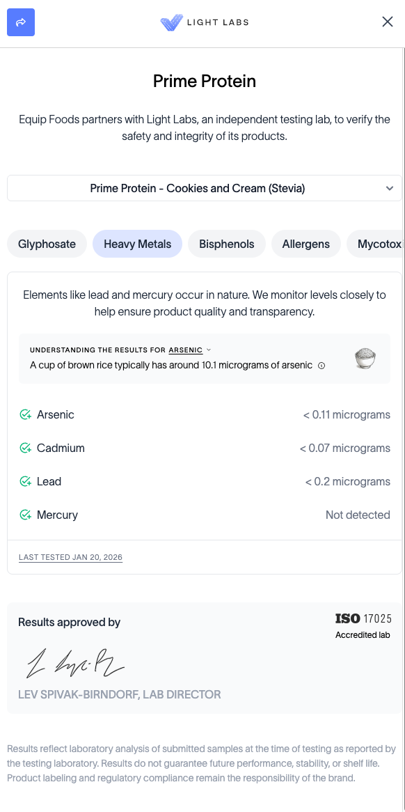 Equip Foods - Prime Protein - Cookies and Cream (Stevia)