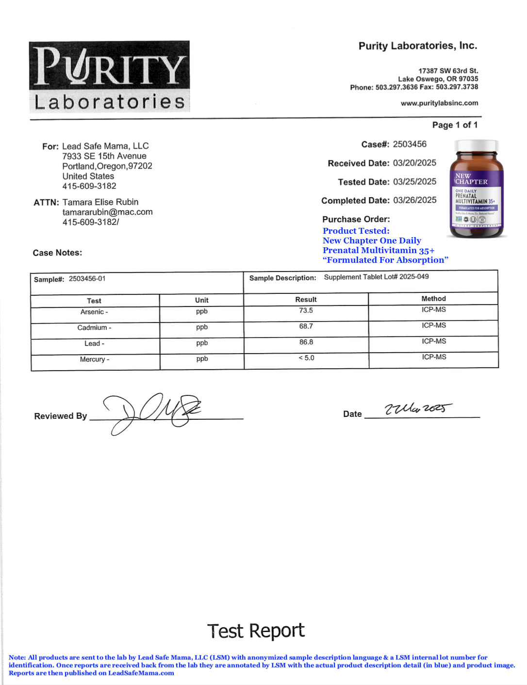 Lead Safe Mama, LLC - Supplement Tablet Lot# 2025-049