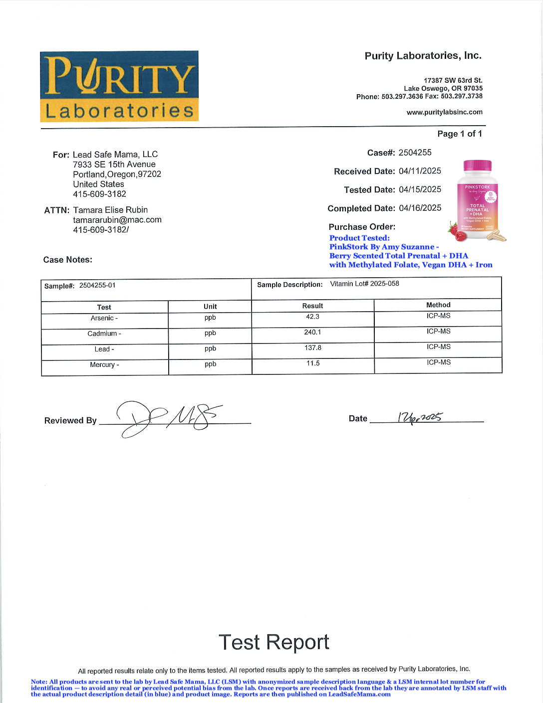 Lead Safe Mama, LLC - PinkStork By Amy Suzanne - Berry Scented Total Prenatal + DHA with Methylated Folate, Vegan DHA + Iron - Vitamin Lot# 2025-058