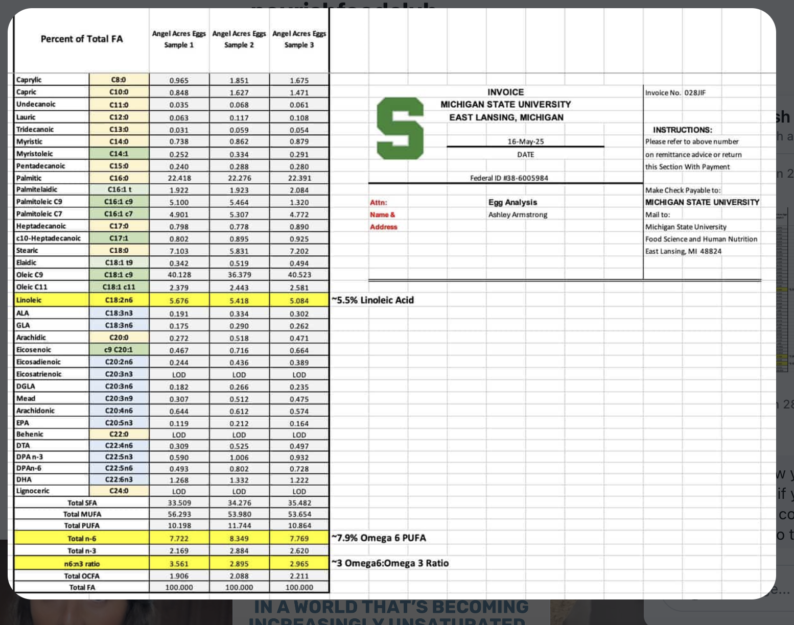 | Linoleic Acid | 5.676 | % of Total FA | detected | — |