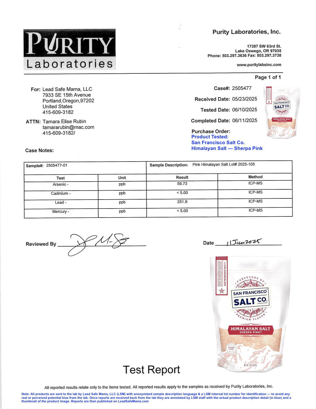 Lead Safe Mama, LLC - Pink Himalayan Salt Lot# 2025-105