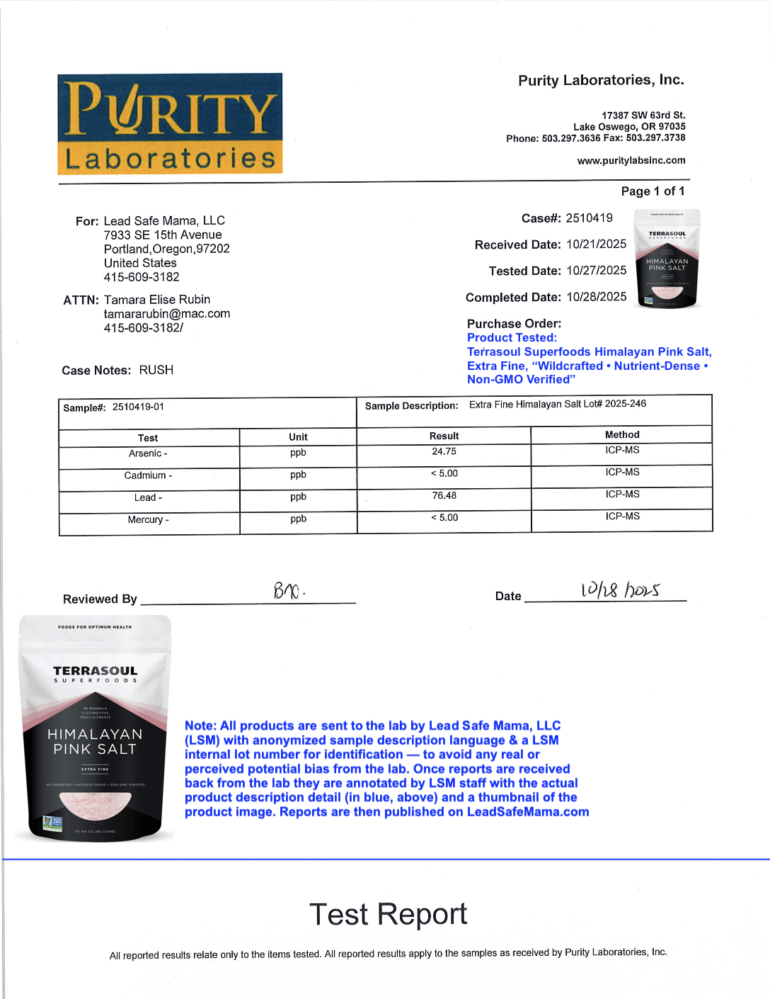 Lead Safe Mama, LLC - Extra Fine Himalayan Salt Lot# 2025-246