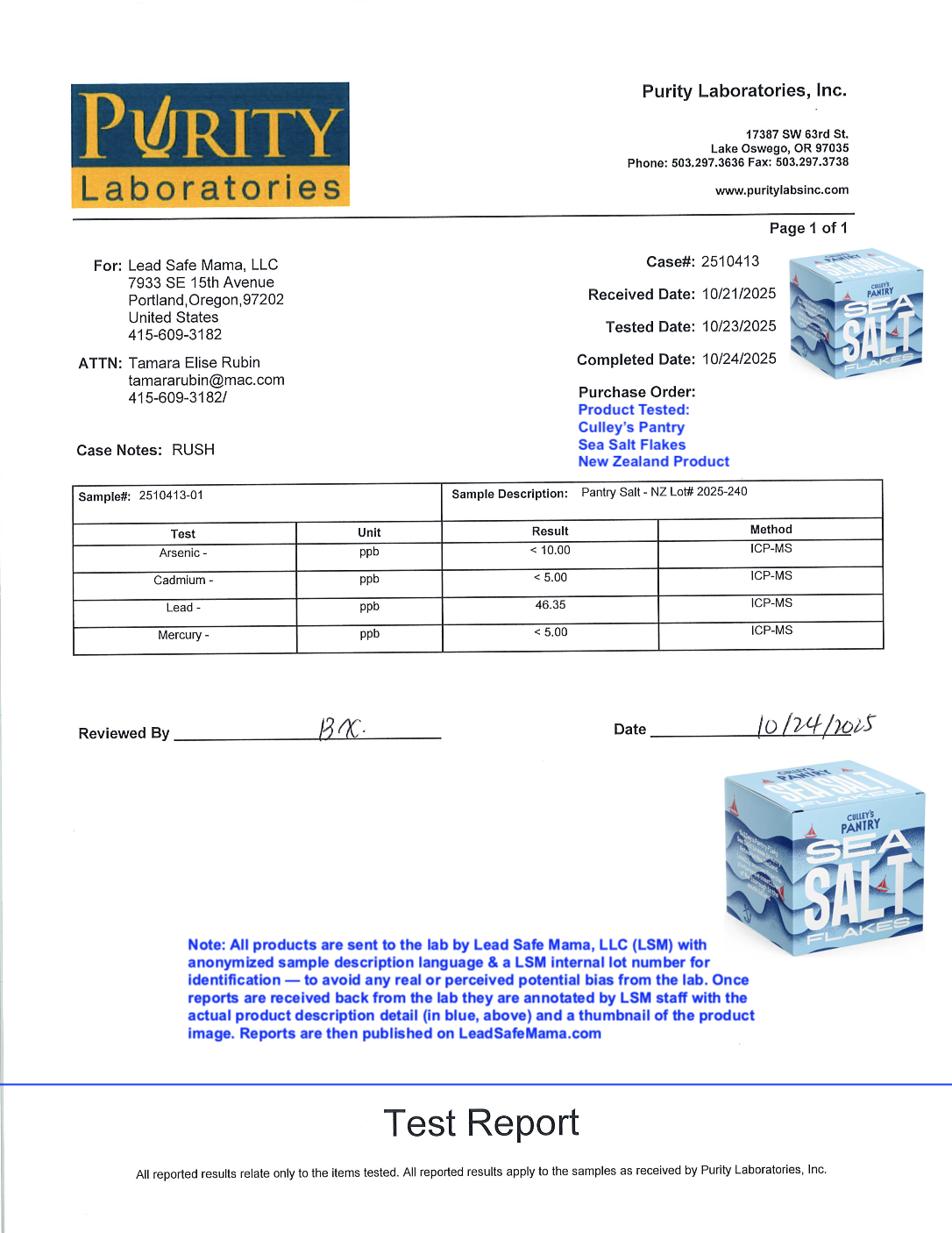 Lead Safe Mama, LLC - Pantry Salt - NZ Lot# 2025-240