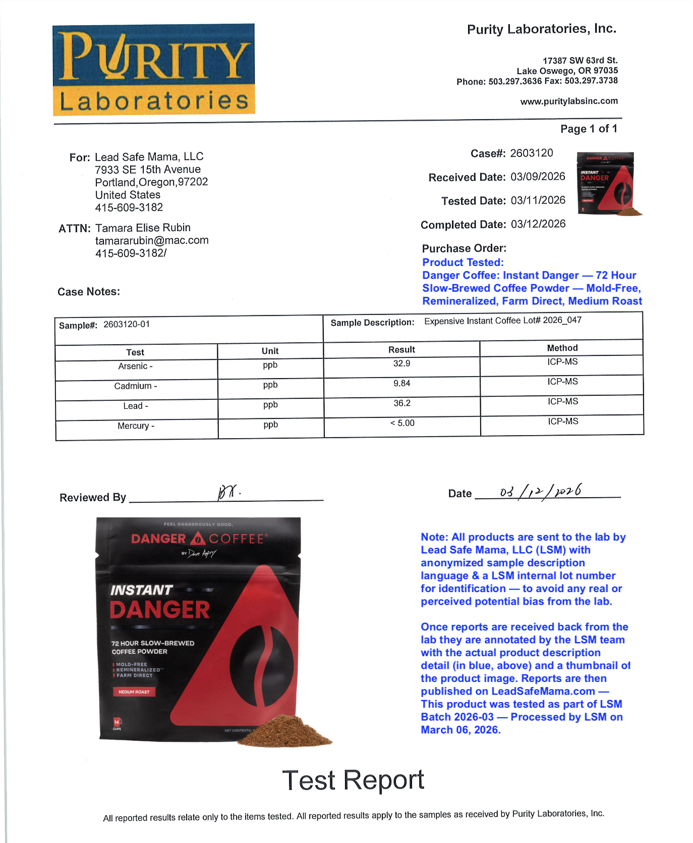 Lead Safe Mama, LLC - Danger Coffee: Instant Danger — 72 Hour Slow-Brewed Coffee Powder — Mold-Free, Remineralized, Farm Direct, Medium Roast