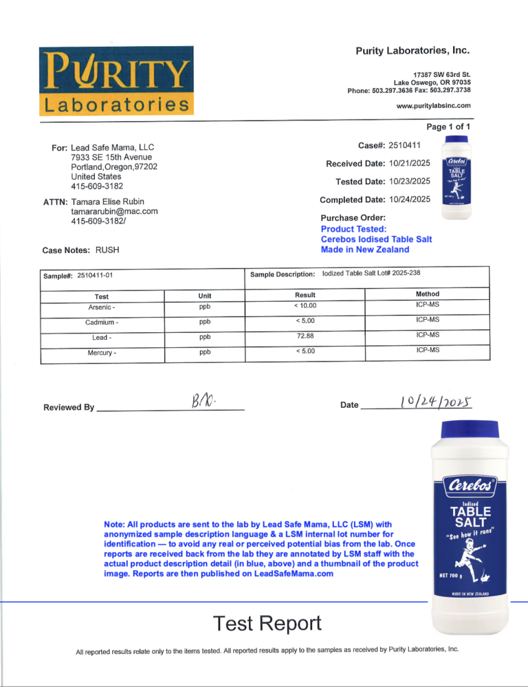 Lead Safe Mama, LLC - Cerebos Iodised Table Salt Made in New Zealand