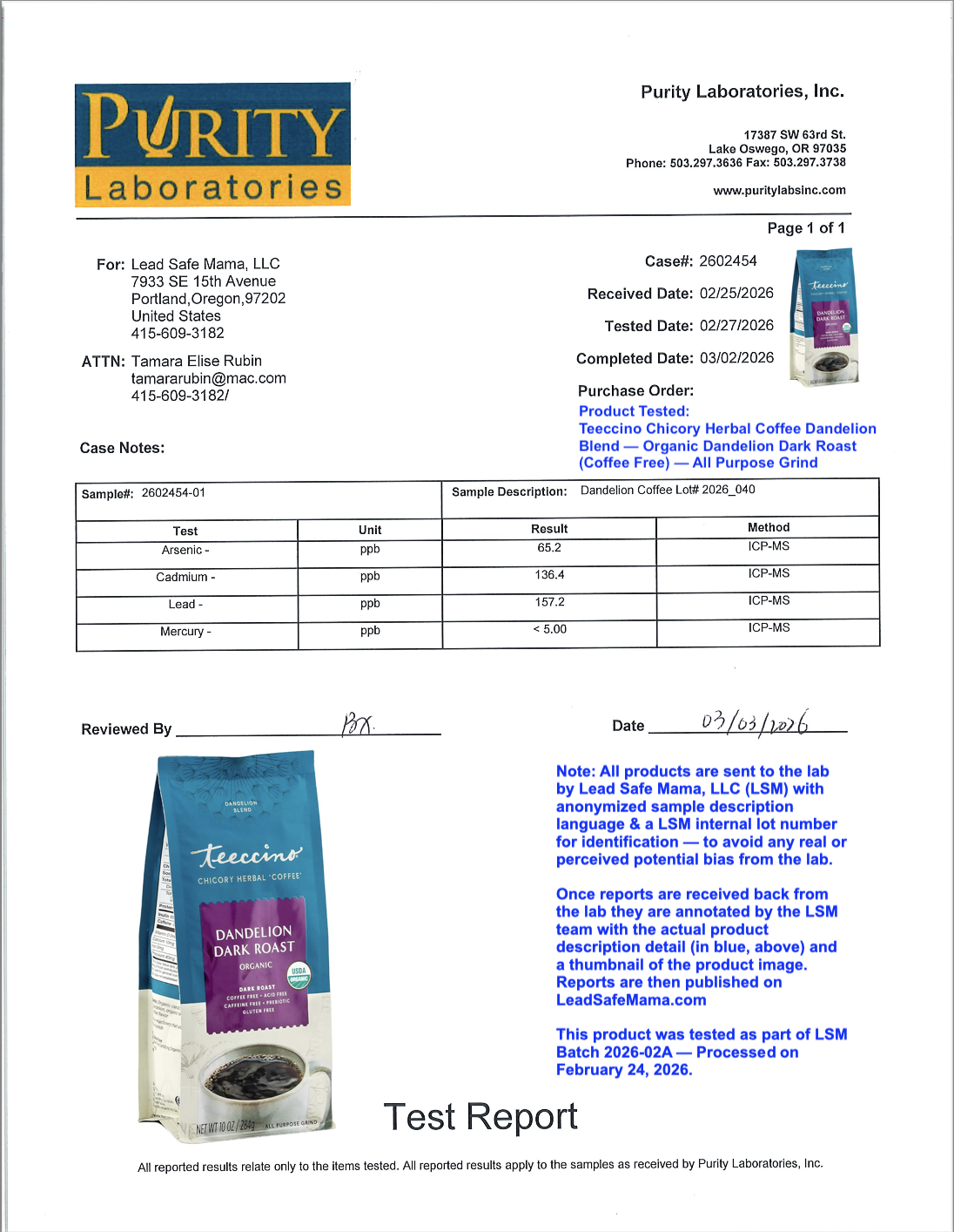 Lead Safe Mama, LLC - Teeccino Chicory Herbal Coffee Dandelion Blend — Organic Dandelion Dark Roast (Coffee Free) — All Purpose Grind