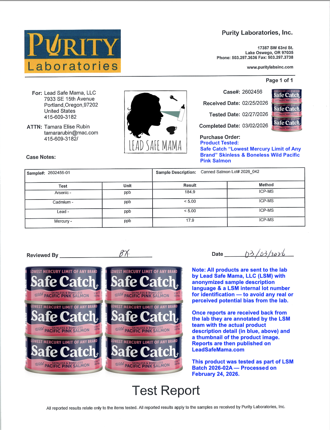 Lead Safe Mama, LLC - Safe Catch "Lowest Mercury Limit of Any Brand" Skinless & Boneless Wild Pacific Pink Salmon