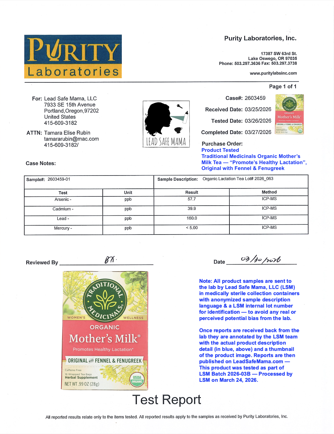 Lead Safe Mama, LLC - Organic Lactation Tea Lot# 2026_063