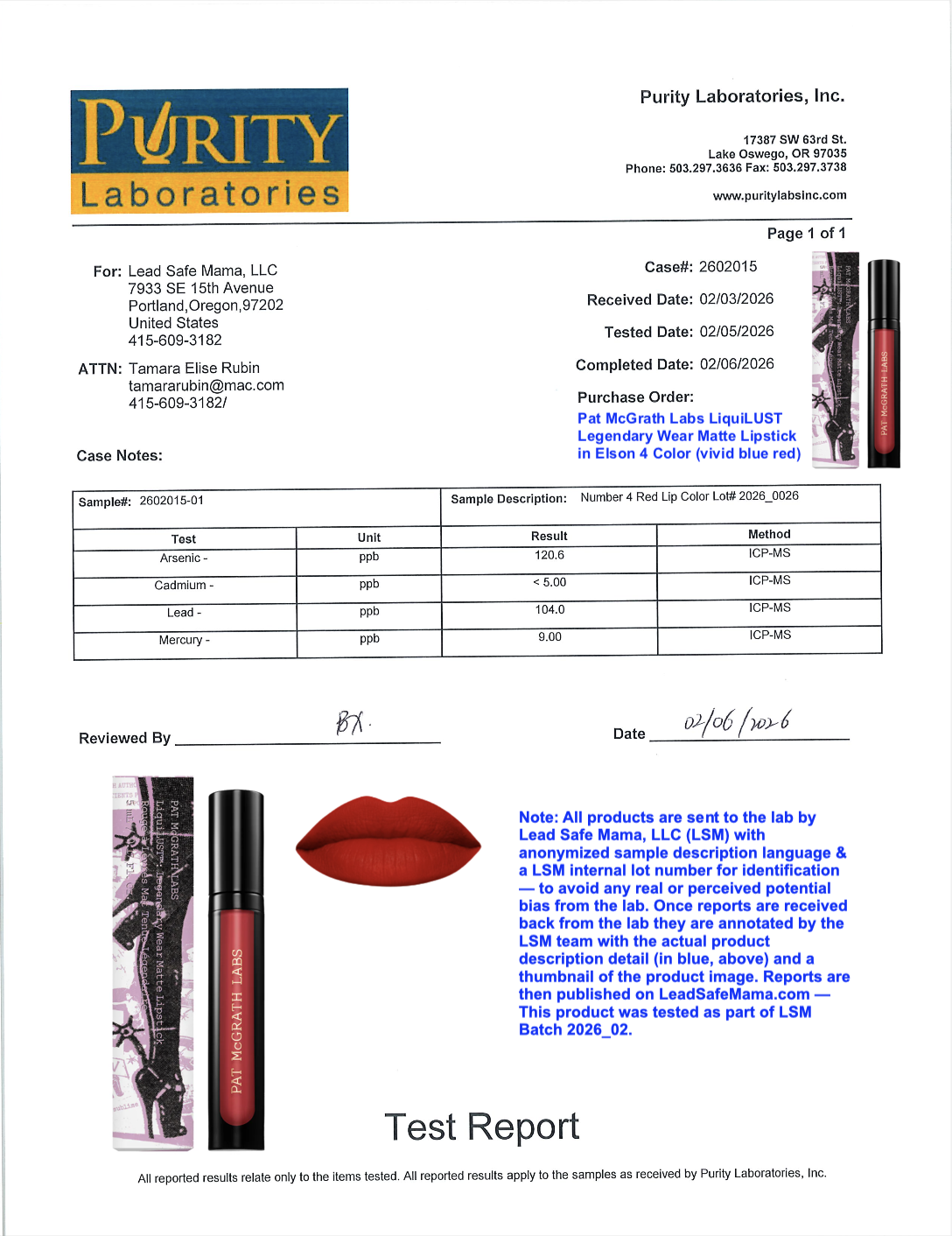 Lead Safe Mama, LLC - Number 4 Red Lip Color Lot# 2026_0026