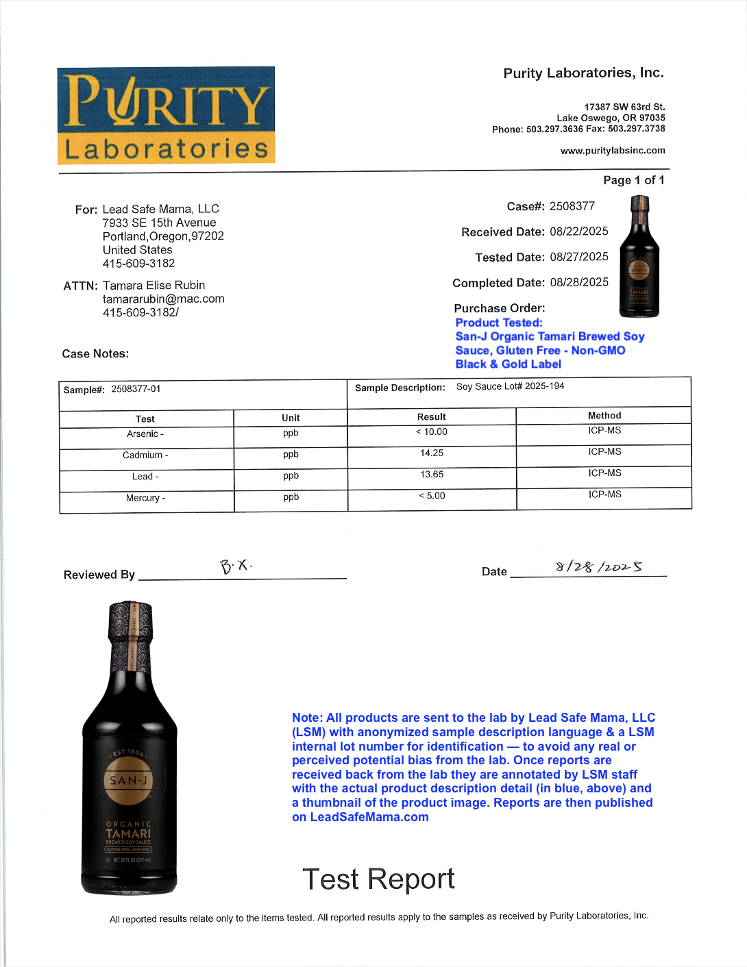 Lead Safe Mama, LLC - San-J Organic Tamari Brewed Soy Sauce, Gluten Free - Non-GMO Black & Gold Label