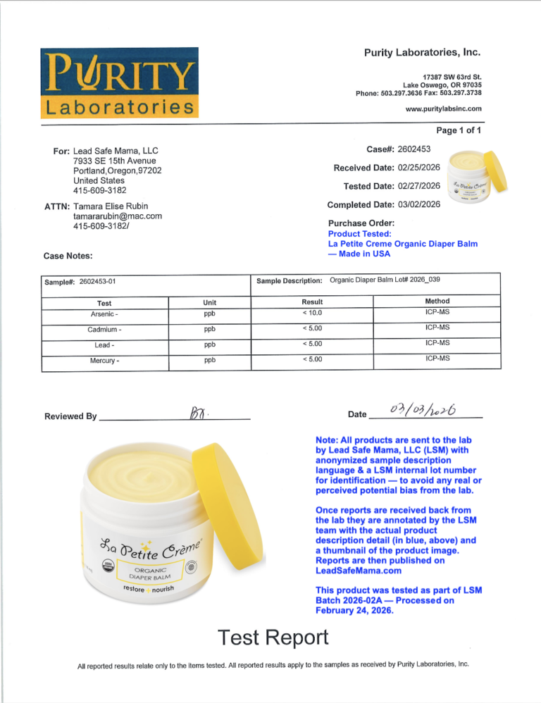 Lead Safe Mama, LLC - Organic Diaper Balm Lot# 2009_039