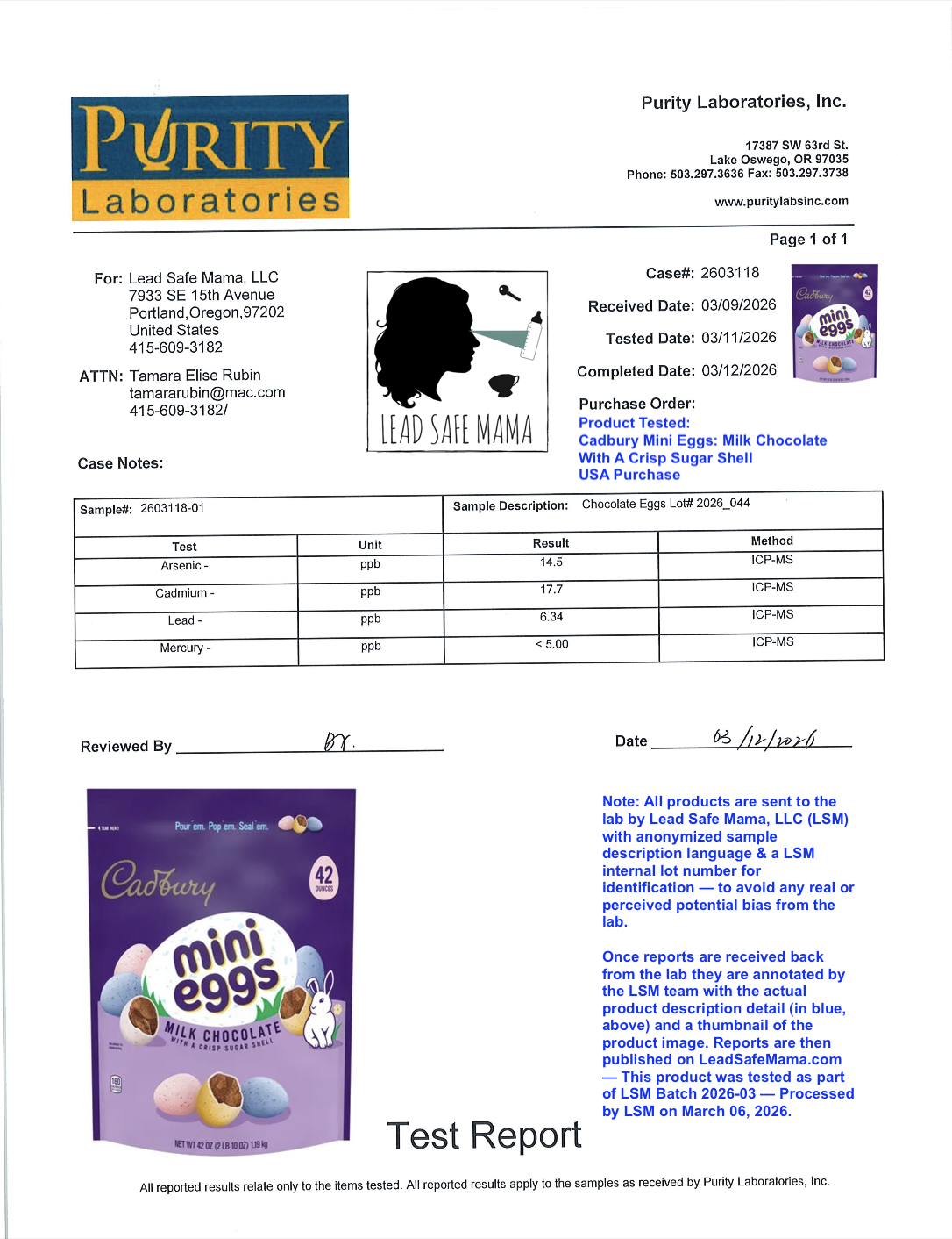 Lead Safe Mama, LLC - Cadbury Mini Eggs: Milk Chocolate With A Crisp Sugar Shell - Chocolate Eggs Lot# 2026_044