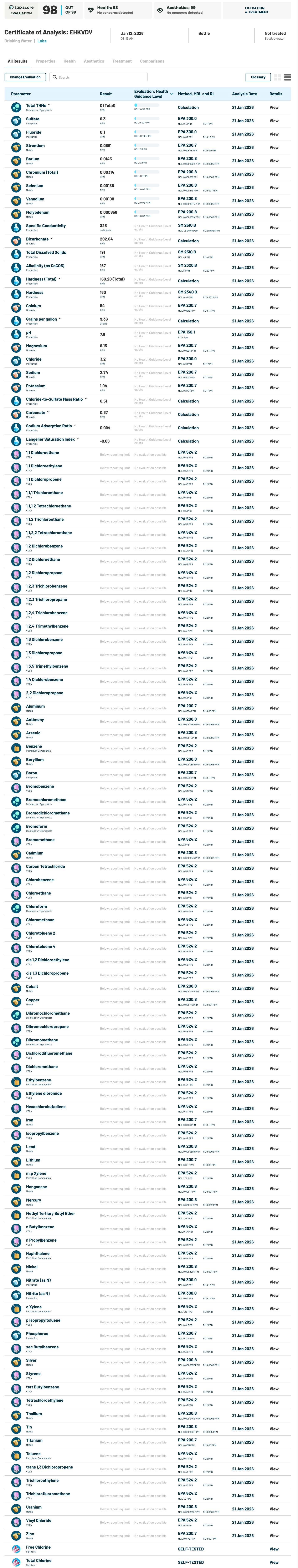See product ratings, lab test results, and expert analysis of water quality and filtration systems.