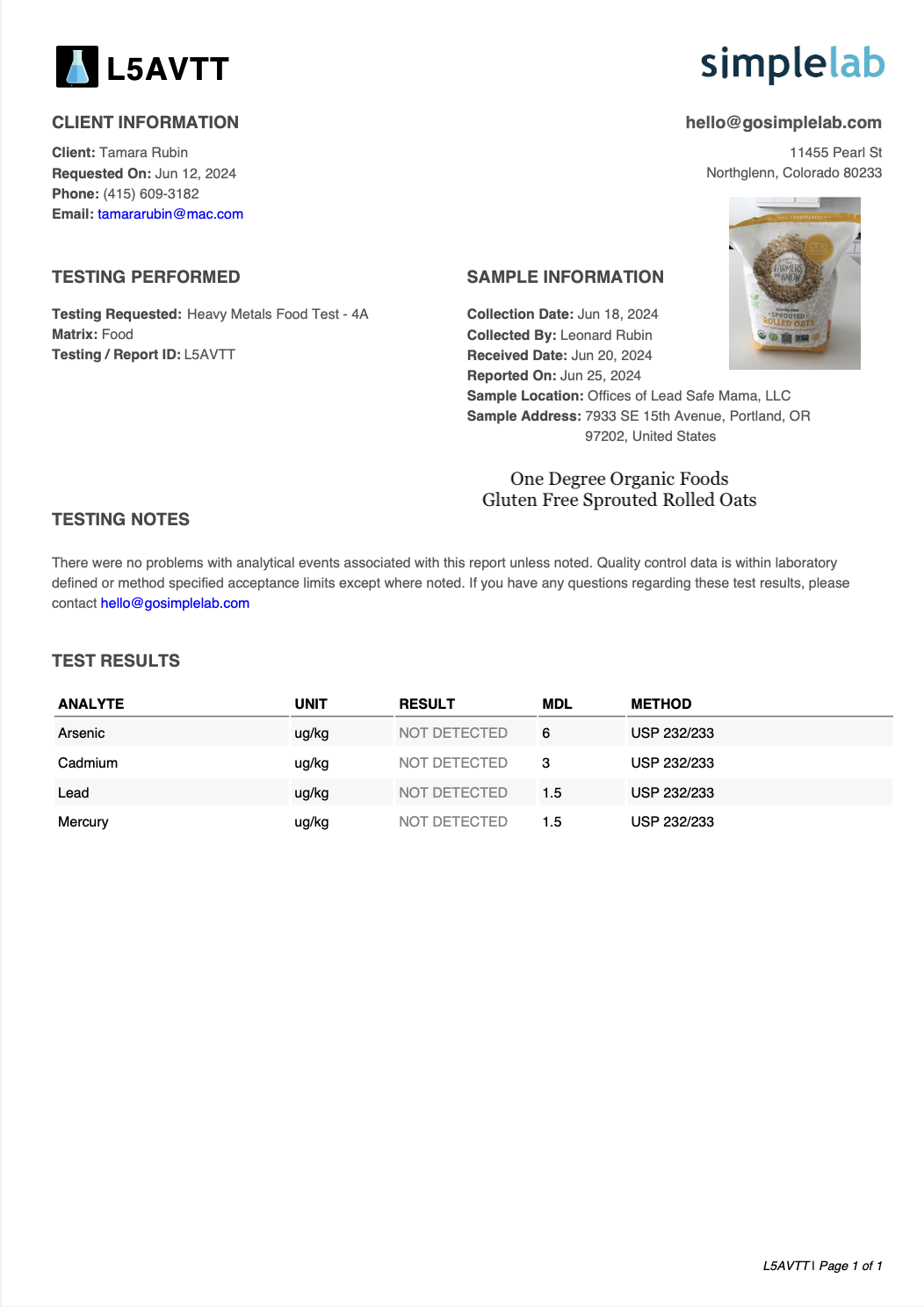 One Degree Organic FoodsLab tested