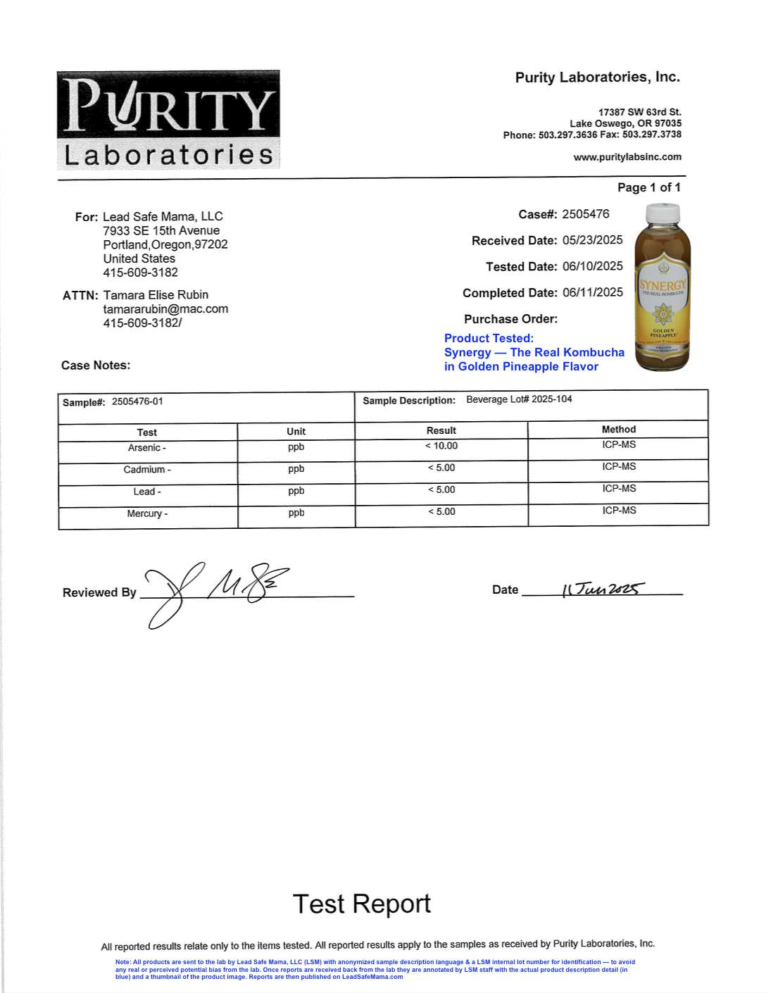 🎉 No contaminants identified in the latest lab tests